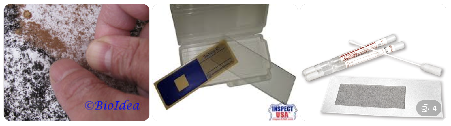A clear adhesive slide is pressed directly against the suspected growth. The sample is sealed and sent to a laboratory for microscopic identification.