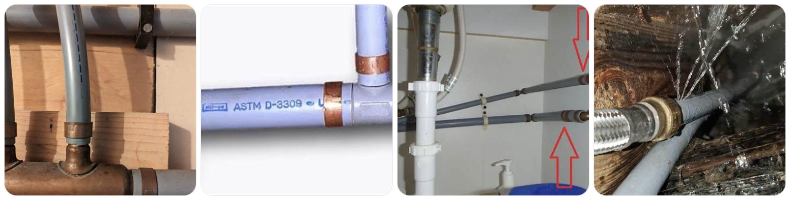 Another weak point was the fitting system used in many installations. Older systems often used plastic acetal insert fittings, and those fittings were widely associated with brittle fractures, scaling, flaking, and leakage, especially in hot-water conditions. Some sources note that systems with metal fittings generally performed better than those with plastic insert fittings, but the material still carries a long history of reliability concerns.
